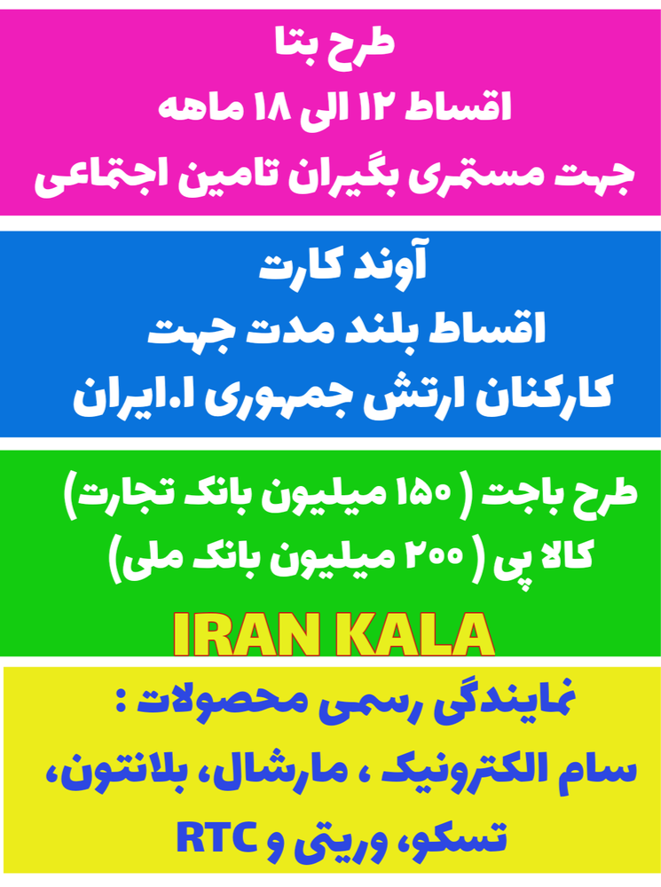 طرخ بتا - رفاه کالا - باجت - کالاپی و وام سی